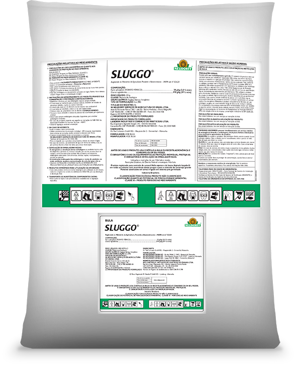 O Sluggo, contém 3% de fosfato férrico. Uma isca atrativa granulada, resistente à umidade, inclusive a chuva, controla todo tipo de lesmas e caracóis, protegendo culturas sem deixar resíduos tóxicos.